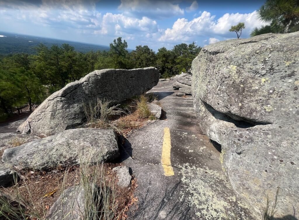 Most haunting of all was the Devilâs Crossroadâa massive slab of granite, four to six feet high, split by two deep cracks running northâsouth and eastâwest. You could walk through those clefts and climb to a caprock in the center, where folks once sat for lunch. The quarrymen broke it apart for building stone long ago.